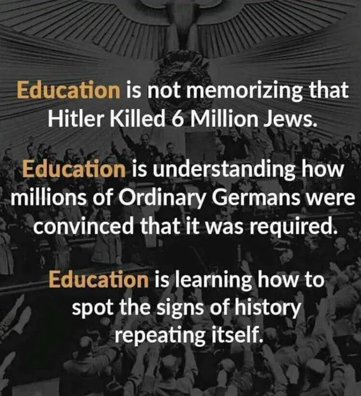12. The unimaginable was the cost of silence and lack of empathy. How did one man get an army of other men to cruelly kill an estimated six million Jewish children, women, and men, people with disabilities, and homosexuals?