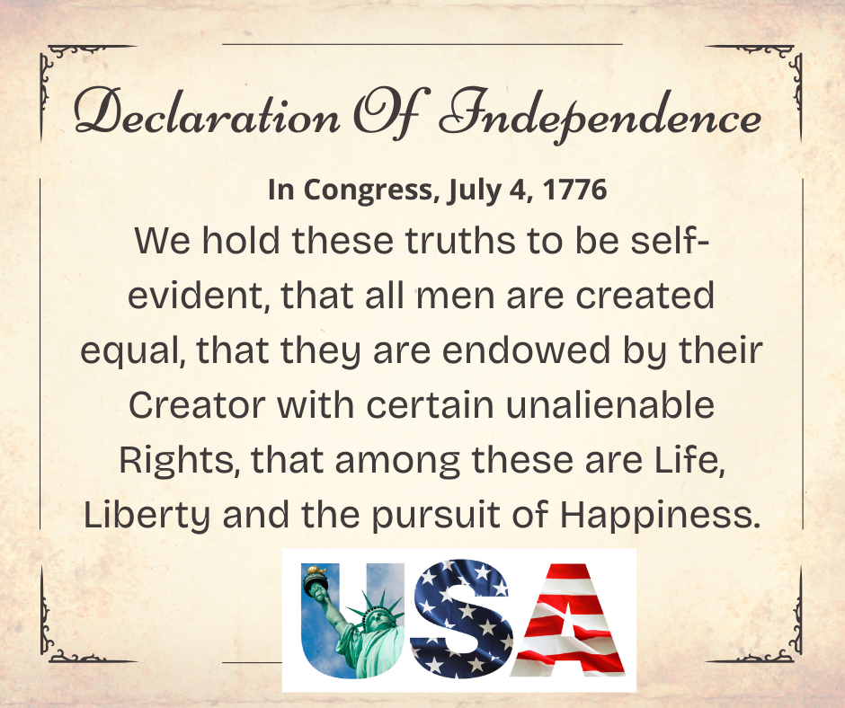 It continues: “That to secure these rights, Governments are instituted among Men, deriving their just powers from the consent of the governed,-That whenever any Form of Government becomes destructive of these ends, it is the Right of the People to alter or to abolish it, and to institute new Government, laying its foundation on such principles and organizing its powers in such form, as to them shall seem most likely to effect their Safety and Happiness.“