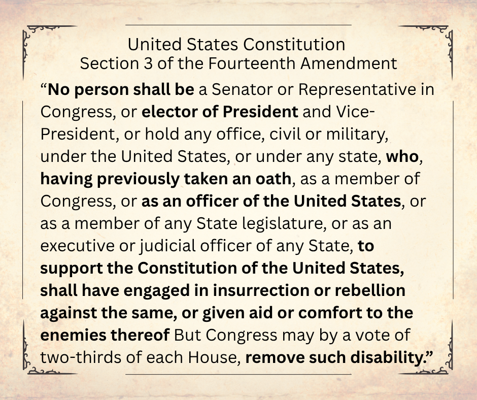The decision by the Conservative Supreme Court Justices not to validate this section of the Constitution so that Trump could run again is a massive betrayal. The English is clear, and so is their bias.