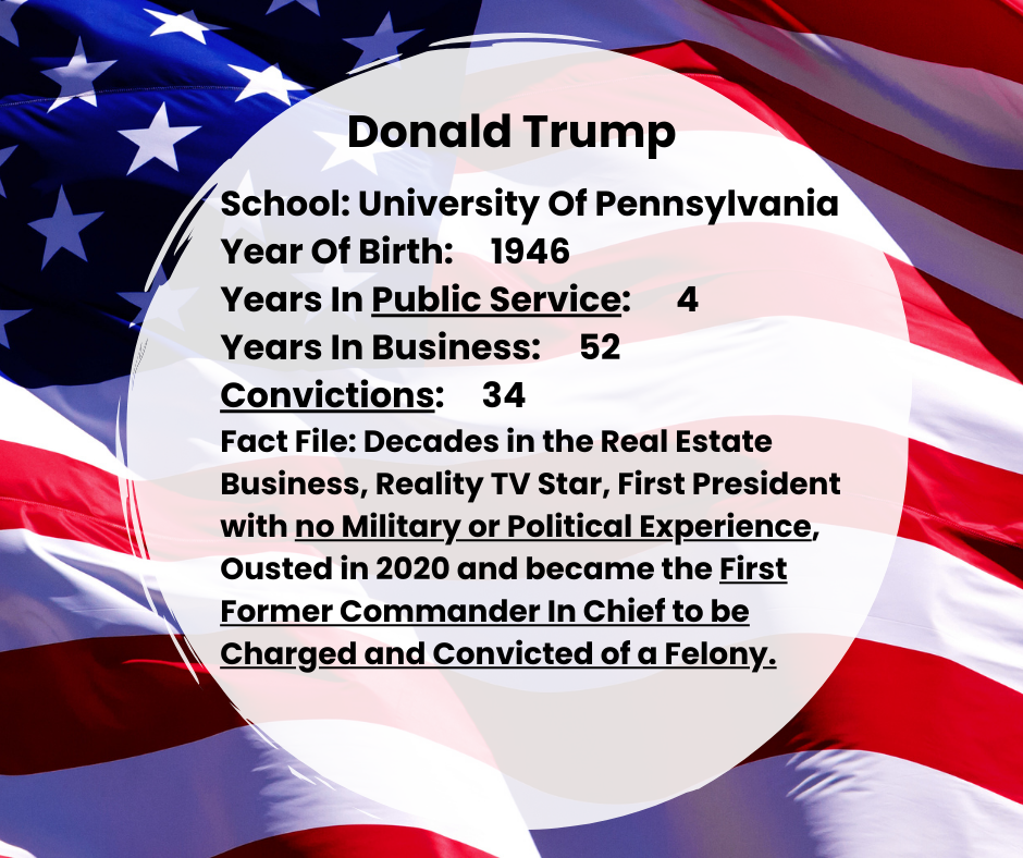 Trump, a twice-impeached president, who paid off a porn star he cheated with while married to Melania, a man found guilty of 34 felonies, adjudicated sexual abuser, known to be a close friend of Jeffrey Epstein (international sex trafficker), told over 30,000 lies in his first term, led an Insurrection to overturn the free and fair election of Joe Biden on January 6, 2021 won. The list of lawlessness and absence of Christianity and morals goes on and on.